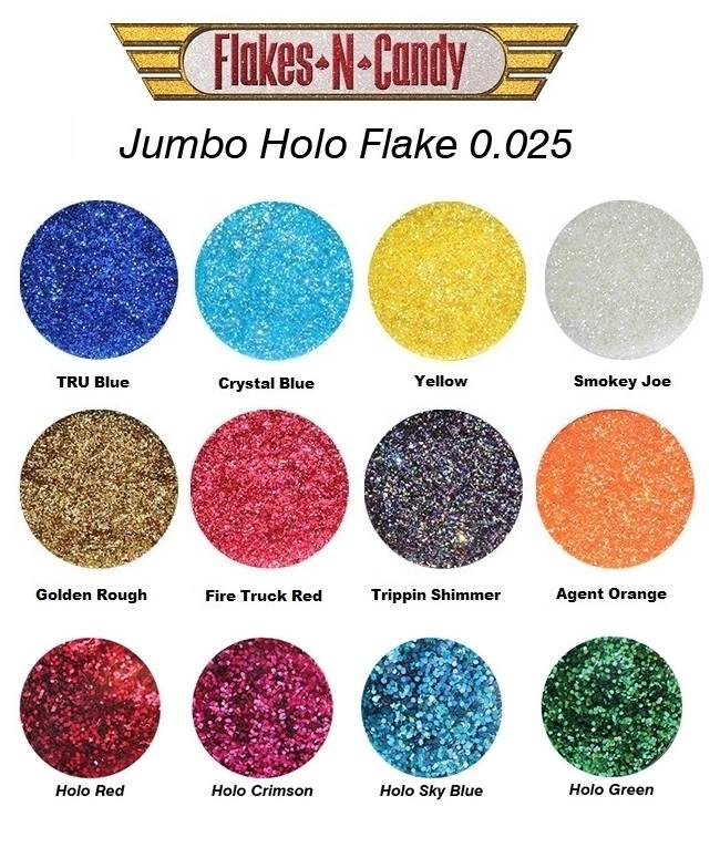 Our NEW Jumbo metal flake series measures a whopping 0.025 in size that's almost 4 times larger than our standard flake so you can imagine the reflection of these high-quality flakes will produce.